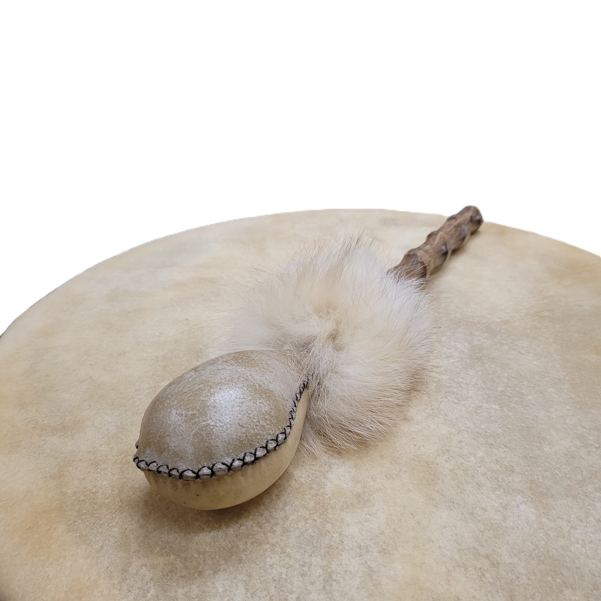 Fait d'une peau de Bison ou de Wapiti et d'un manche en bois de rose. Éclats de pierre à l'intérieur et fourrure de renard recyclée. Le hochet est l’allié du tambour durant vos cérémonies, soins énergétiques et purifications de vos espaces de vie. Le hochet facilite l’état de transe chamanique, nous rappelant notre reliance aux étoiles par ses éclats de pierre à l’intérieur. Le hochet chamanique est orné de fourrure recyclée, honorant l’esprit de l’animal tout en nous accompagnant par ses vertus totémiques. Cet allié du tambour ancre le corps d’énergie X et active le pont entre l’humain et le divin.