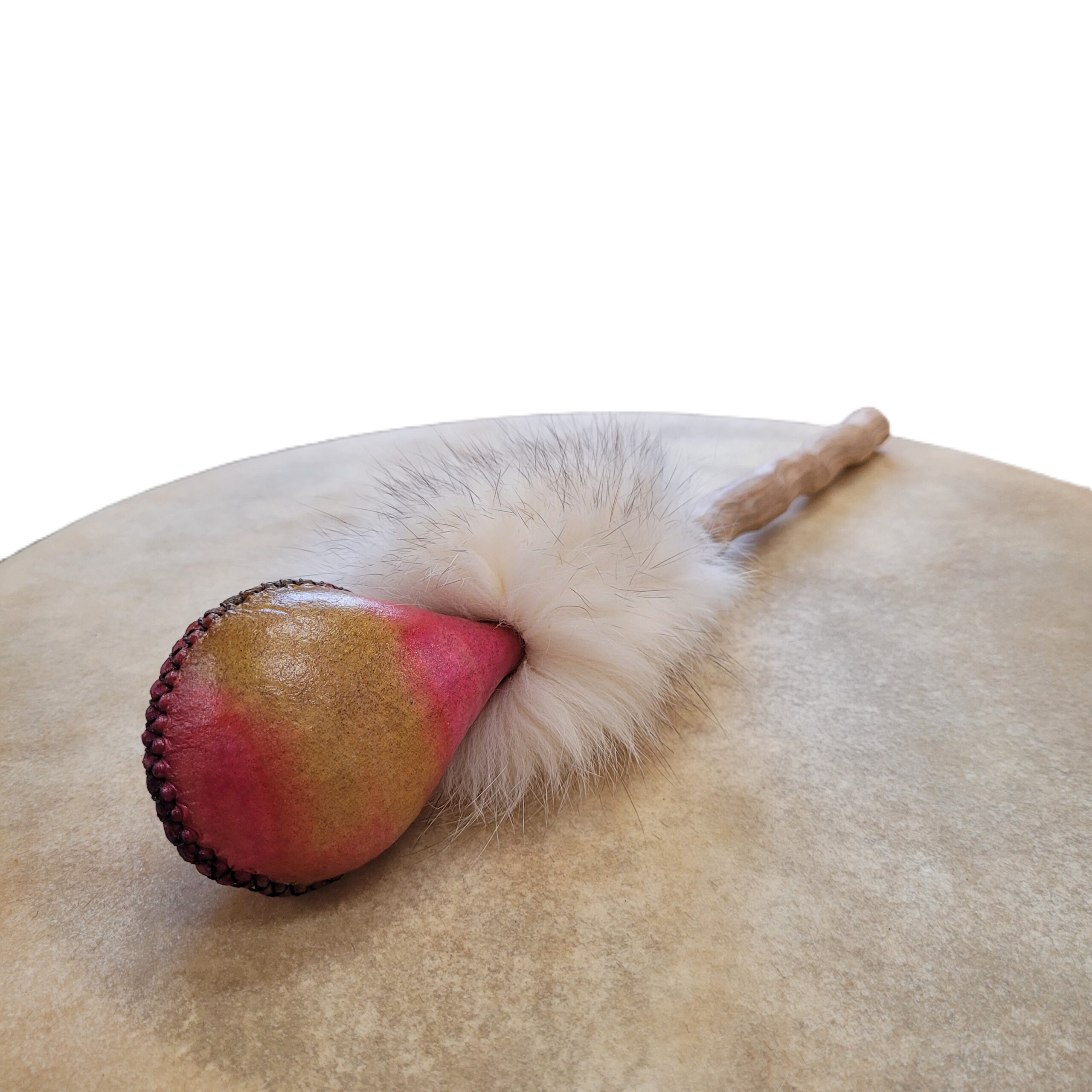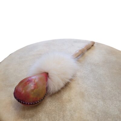 Fait d'une peau de Bison ou de Wapiti et d'un manche en bois de rose. Éclats de pierre à l'intérieur et fourrure de renard recyclée. Le hochet est l’allié du tambour durant vos cérémonies, soins énergétiques et purifications de vos espaces de vie. Le hochet facilite l’état de transe chamanique, nous rappelant notre reliance aux étoiles par ses éclats de pierre à l’intérieur. Le hochet chamanique est orné de fourrure recyclée, honorant l’esprit de l’animal tout en nous accompagnant par ses vertus totémiques. Cet allié du tambour ancre le corps d’énergie X et active le pont entre l’humain et le divin.