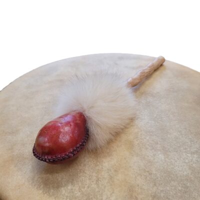 Fait d'une peau de Bison ou de Wapiti et d'un manche en bois de rose. Éclats de pierre à l'intérieur et fourrure de renard recyclée. Le hochet est l’allié du tambour durant vos cérémonies, soins énergétiques et purifications de vos espaces de vie. Le hochet facilite l’état de transe chamanique, nous rappelant notre reliance aux étoiles par ses éclats de pierre à l’intérieur. Le hochet chamanique est orné de fourrure recyclée, honorant l’esprit de l’animal tout en nous accompagnant par ses vertus totémiques. Cet allié du tambour ancre le corps d’énergie X et active le pont entre l’humain et le divin.