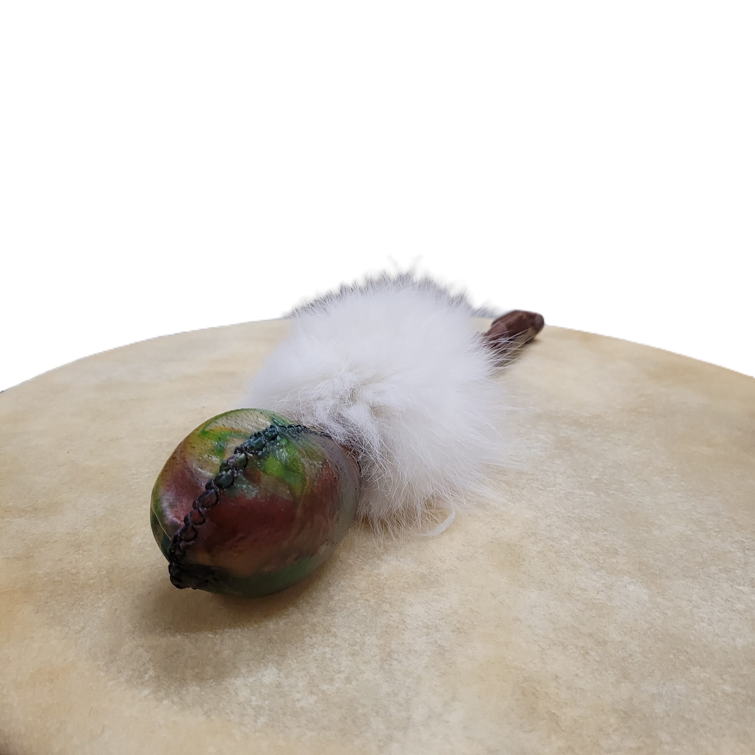 Fait d'une peau de Bison ou de Wapiti et d'un manche en bois de rose. Éclats de pierre à l'intérieur et fourrure de renard recyclée. Le hochet est l’allié du tambour durant vos cérémonies, soins énergétiques et purifications de vos espaces de vie. Le hochet facilite l’état de transe chamanique, nous rappelant notre reliance aux étoiles par ses éclats de pierre à l’intérieur. Le hochet chamanique est orné de fourrure recyclée, honorant l’esprit de l’animal tout en nous accompagnant par ses vertus totémiques. Cet allié du tambour ancre le corps d’énergie X et active le pont entre l’humain et le divin.