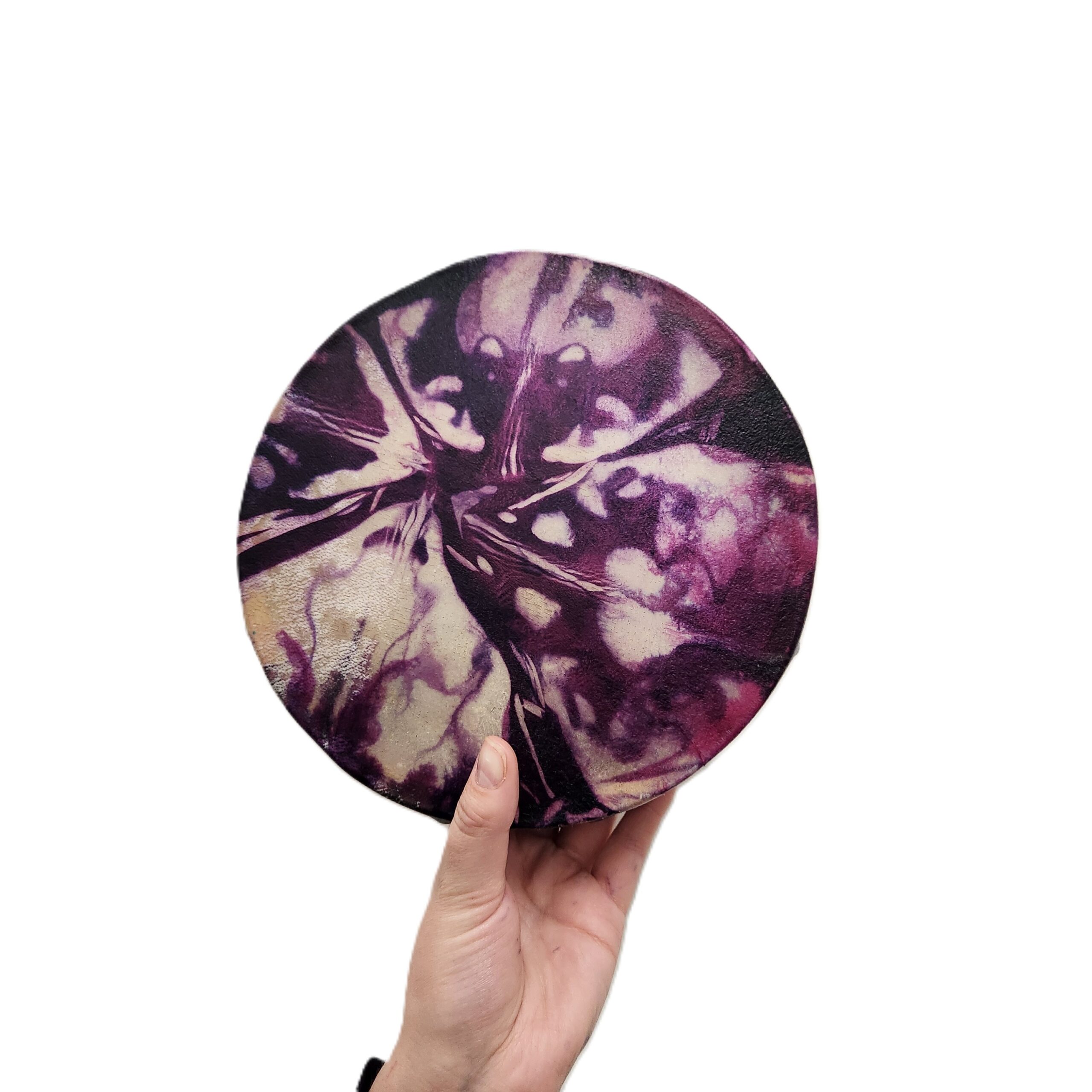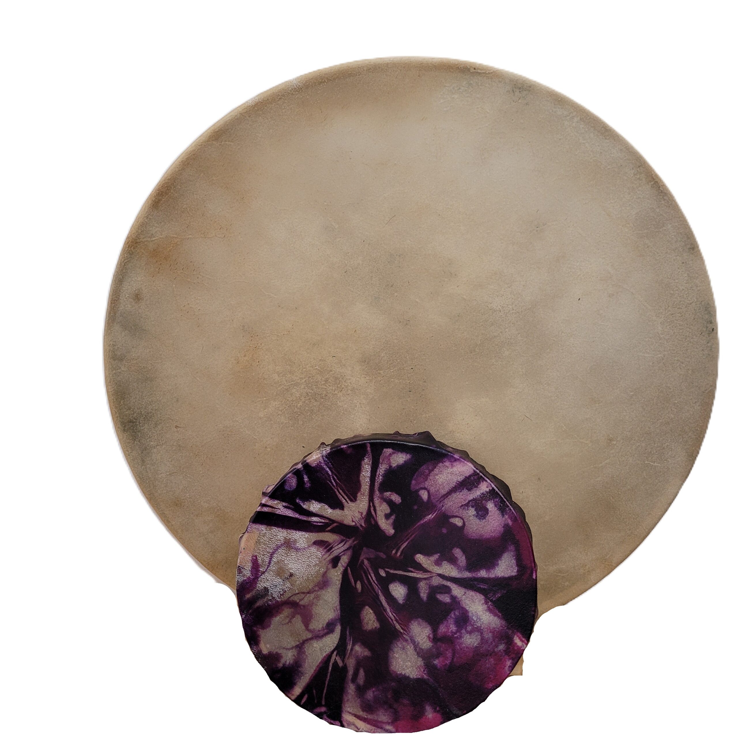 Notre tambour à main Bambino est fait d'une peau de bison et un cercle en bois d'érable. Cordage de coton. Une mailloche est incluse. Fabriqué à la main avec amour au Québec.