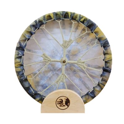 Notre tambour à main Unis-Son est fait d’une peau de Bison et un cercle en bois d’érable (18″/45 cm). Le tissage contour est idéal pour les régions humides et la poignée en 100% coton contient une pierre au milieu. Une mailloche est incluse. Fabriqué à la main avec amour au Québec.