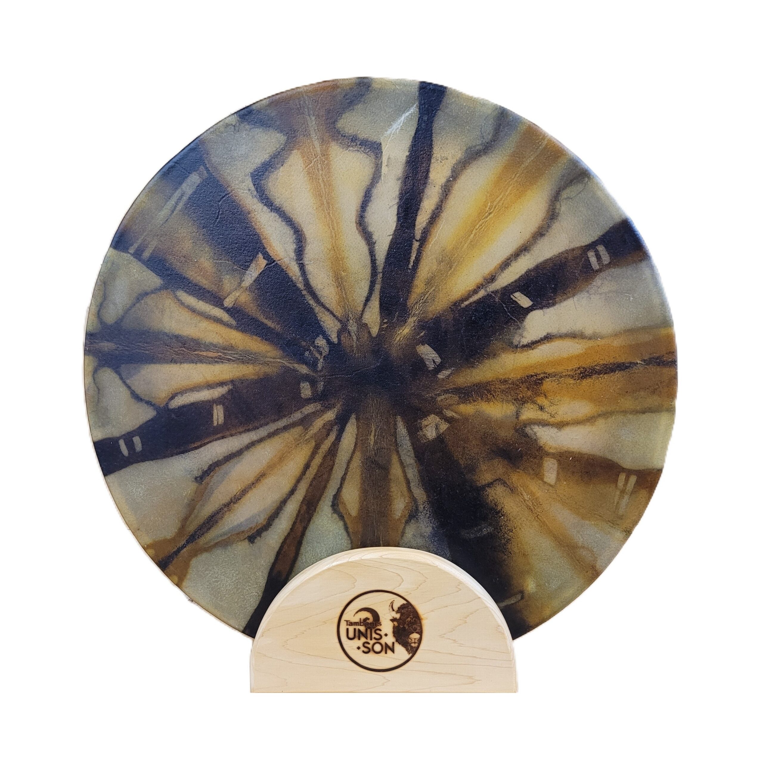 Notre tambour à main Unis-Son est fait d’une peau de Bison et un cercle en bois d’érable (18″/45 cm). Le tissage contour est idéal pour les régions humides et la poignée en 100% coton contient une pierre au milieu. Une mailloche est incluse. Fabriqué à la main avec amour au Québec.