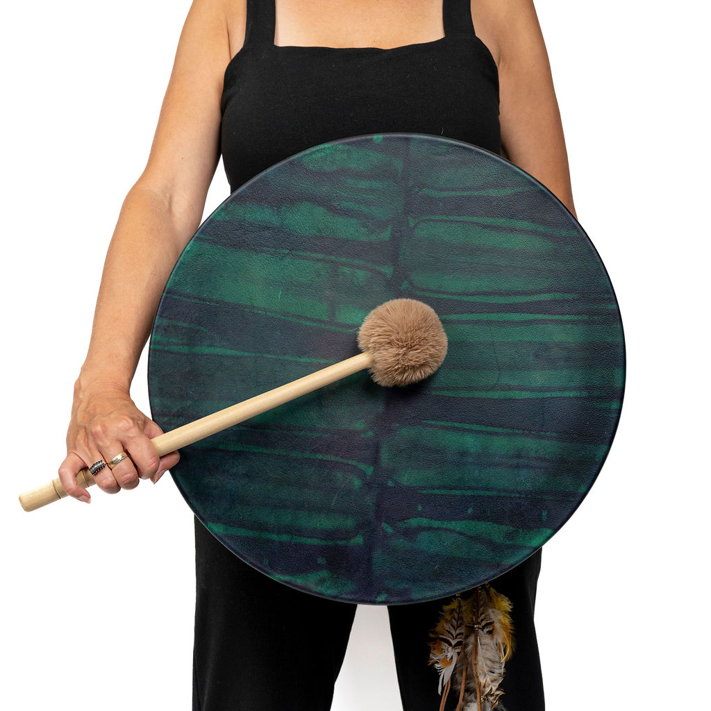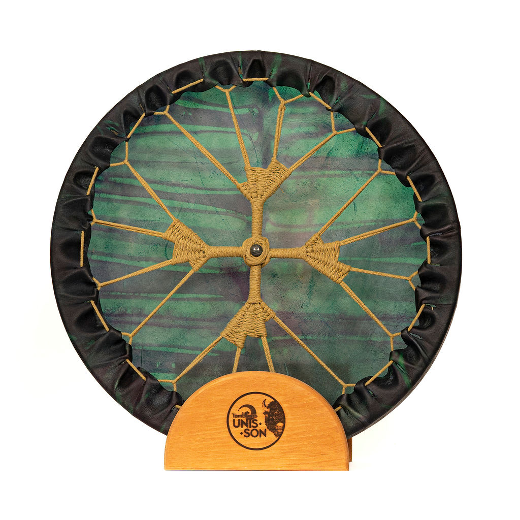 Notre tambour à main Unis-Son est fait d’une peau de Bison et un cercle en bois d’érable (18″/45 cm). Le tissage contour est idéal pour les régions humides et la poignée en 100% coton contient une pierre au milieu. Une mailloche est incluse. Fabriqué à la main avec amour au Québec.