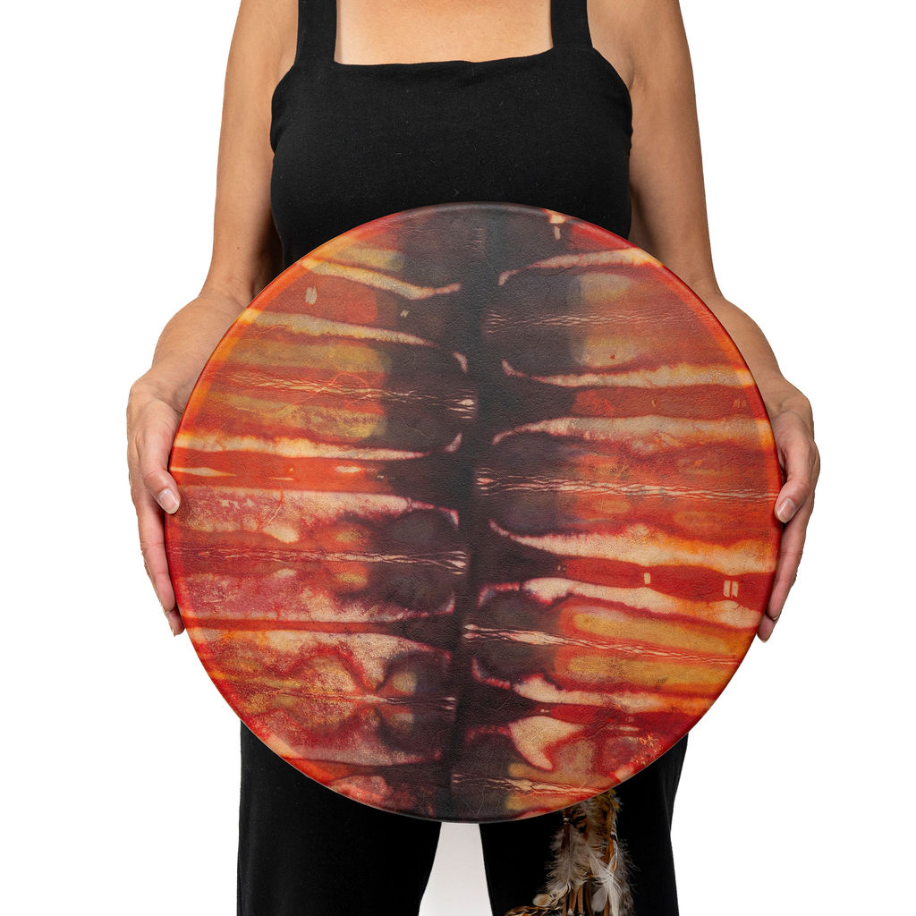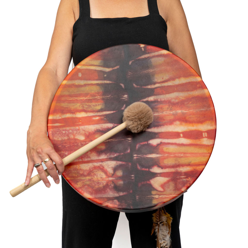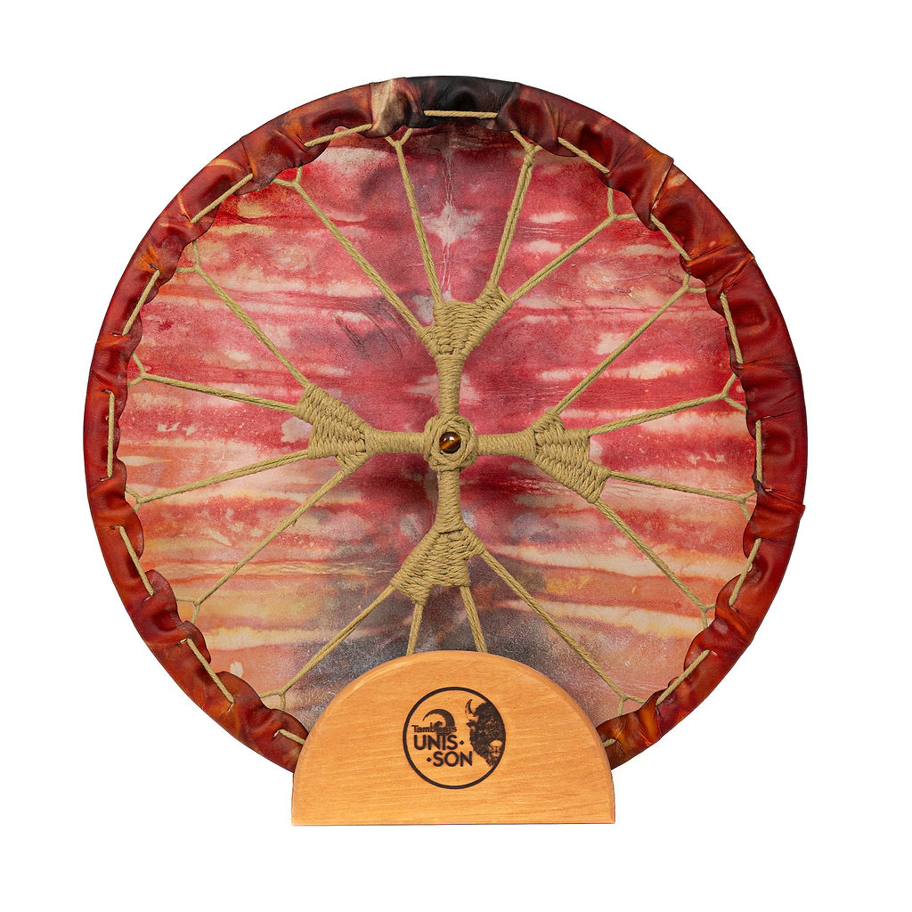 Notre tambour à main Unis-Son est fait d’une peau de Bison et un cercle en bois d’érable (18″/45 cm). Le tissage contour est idéal pour les régions humides et la poignée en 100% coton contient une pierre au milieu. Une mailloche est incluse. Fabriqué à la main avec amour au Québec.