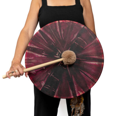 Notre tambour à main Unis-Son est fait d’une peau de Bison et un cercle en bois d’érable (18″/45 cm). Le tissage contour est idéal pour les régions humides et la poignée en 100% coton contient une pierre au milieu. Une mailloche est incluse. Fabriqué à la main avec amour au Québec.