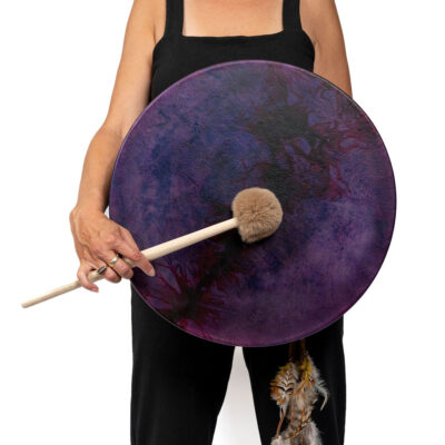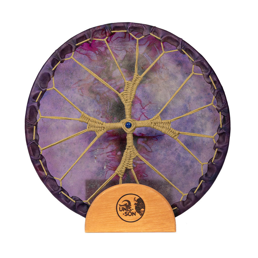 Notre tambour à main Unis-Son est fait d’une peau de Bison et un cercle en bois d’érable (18″/45 cm). Le tissage contour est idéal pour les régions humides et la poignée en 100% coton contient une pierre au milieu. Une mailloche est incluse. Fabriqué à la main avec amour au Québec.