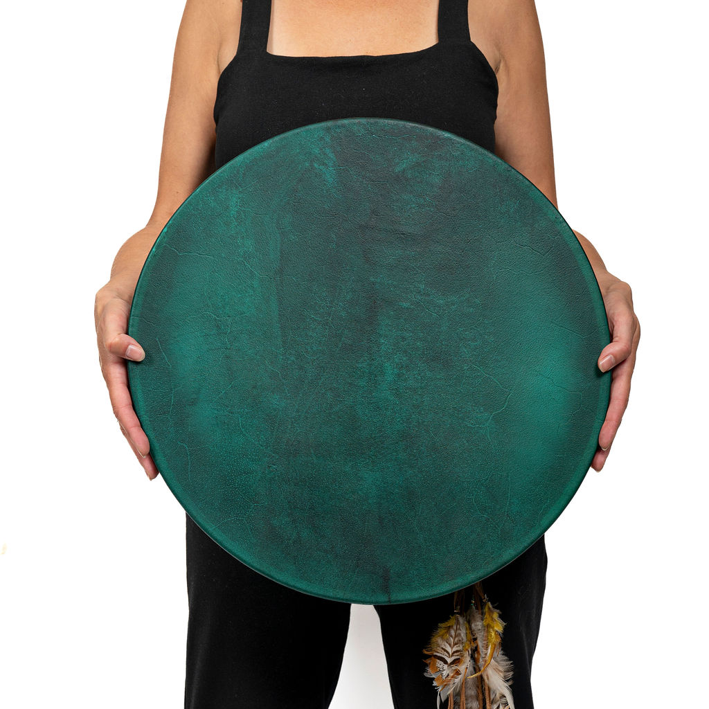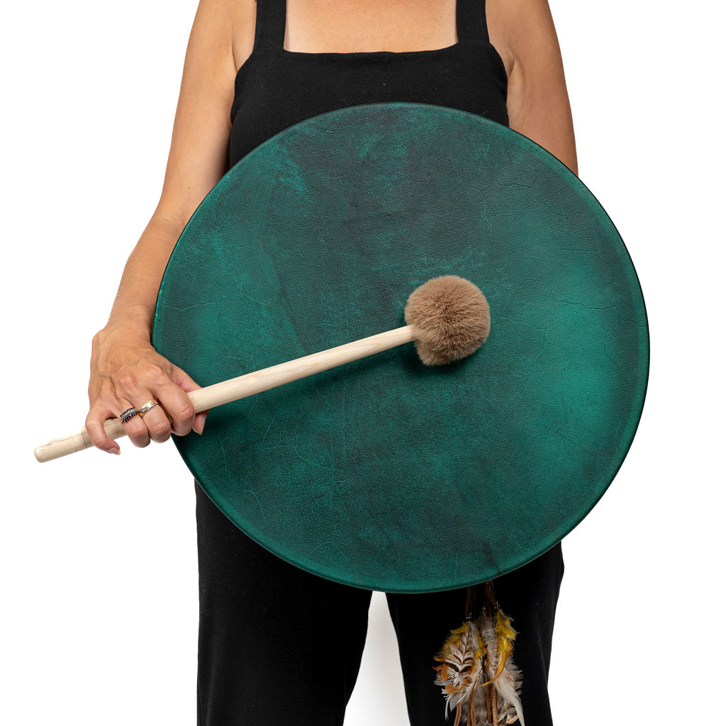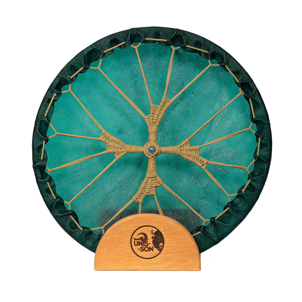 Notre tambour à main Unis-Son est fait d’une peau de Bison et un cercle en bois d’érable (18″/45 cm). Le tissage contour est idéal pour les régions humides et la poignée en 100% coton contient une pierre au milieu. Une mailloche est incluse. Fabriqué à la main avec amour au Québec.