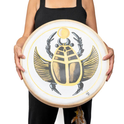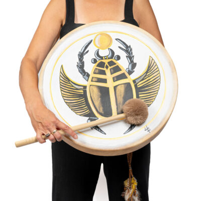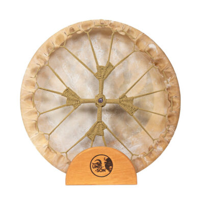 Notre tambour à main Unis-Son peint est fait d’une peau de Bison et un cercle en bois d’érable (18″/45 cm). Le tissage contour est idéal pour les régions humides et la poignée en 100% coton contient une pierre au milieu. Une mailloche est incluse. Fabriqué et peint à la main avec amour au Québec.