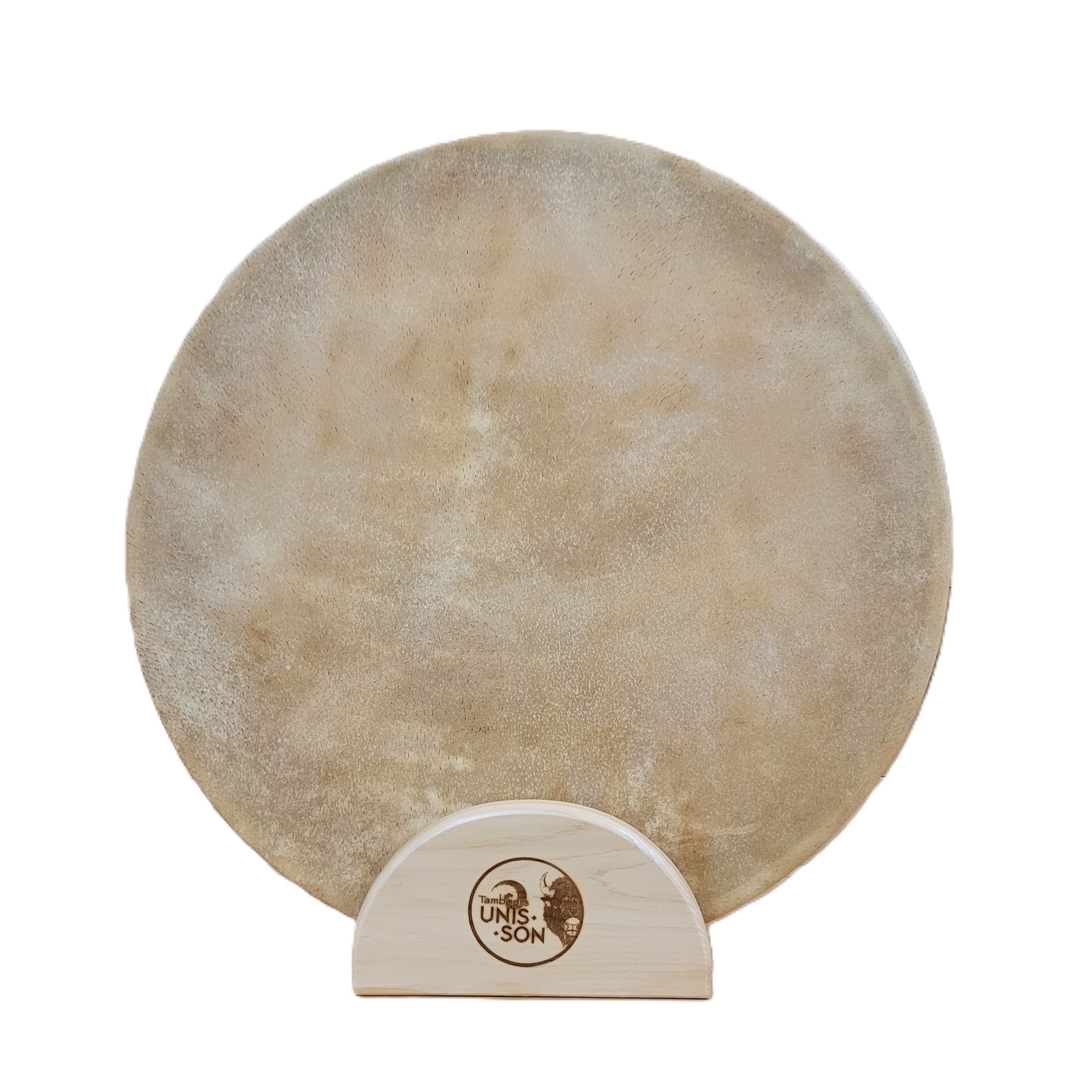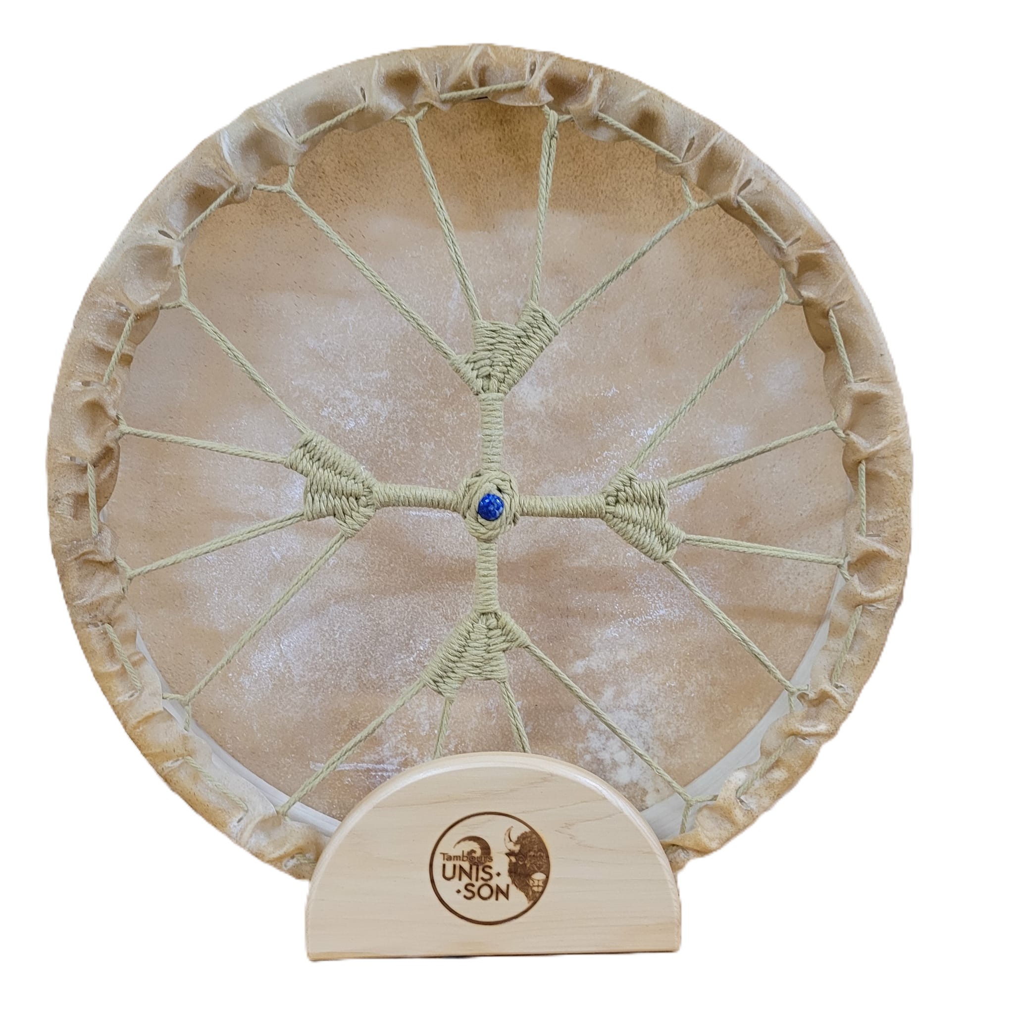 Notre tambour à main Unis-Son est fait d’une peau de Bison et un cercle en bois d’érable (18″/45 cm). Le tissage contour est idéal pour les régions humides et la poignée en 100% coton contient une pierre au milieu. Une mailloche est incluse. Fabriqué à la main avec amour au Québec.
