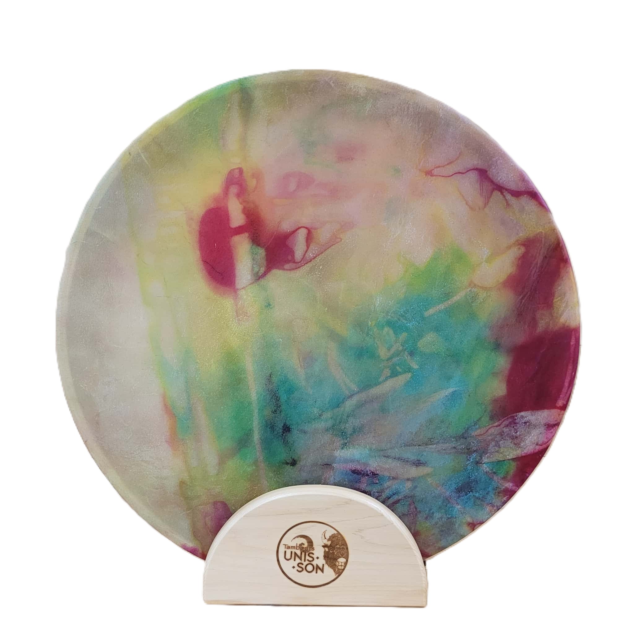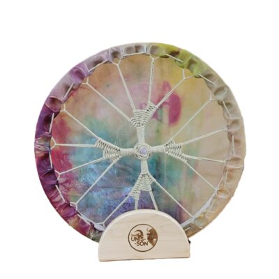 Notre tambour à main Unis-Son est fait d’une peau de Bison et un cercle en bois d’érable (18″/45 cm). Le tissage contour est idéal pour les régions humides et la poignée en 100% coton contient une pierre au milieu. Une mailloche est incluse. Fabriqué à la main avec amour au Québec.