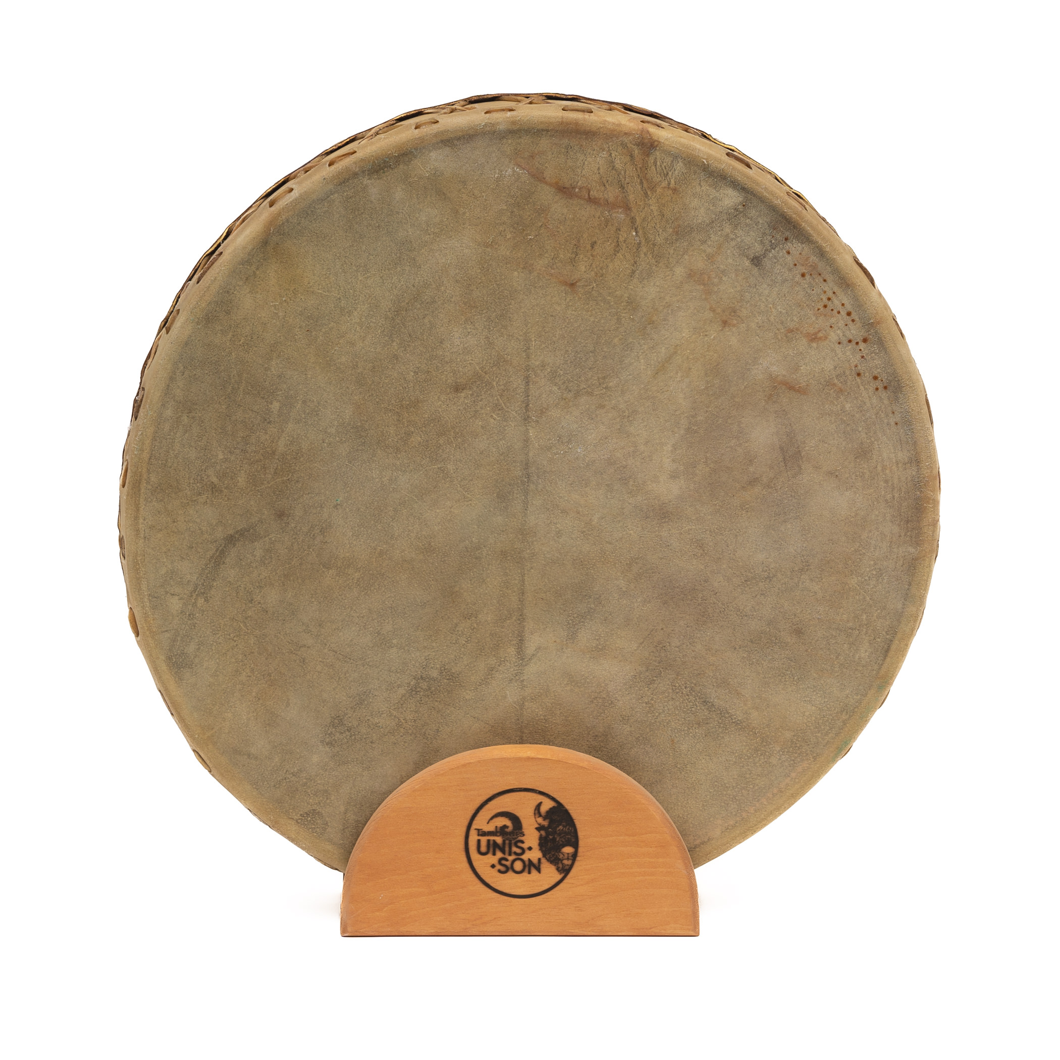 Le tambour Océan est fait de deux peaux de Bison, un cadre en bois d’érable et des billes de cuivre.