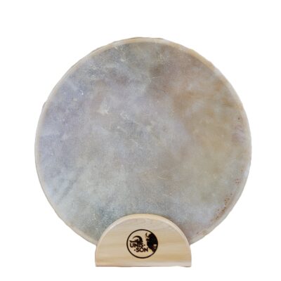 Le tambour Océan est fait de deux peaux de Bison, un cadre en bois d’érable et des billes de cuivre.