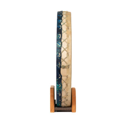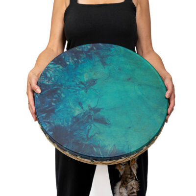Le tambour Océan est fait de deux peaux de Bison, un cadre en bois d’érable et des billes de cuivre.
