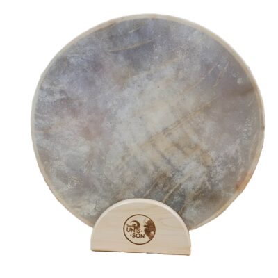 Le tambour Océan est fait de deux peaux de Bison, un cadre en bois d’érable et des billes de cuivre.