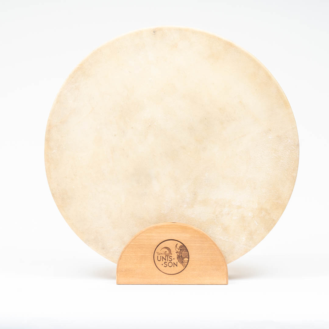 Notre tambour à main Unis-Son est fait d’une peau de Bison et un cercle en bois d’érable (18″/45 cm). Le tissage contour est idéal pour les régions humides et la poignée en 100% coton contient une pierre au milieu. Une mailloche est incluse. Fabriqué à la main avec amour au Québec.